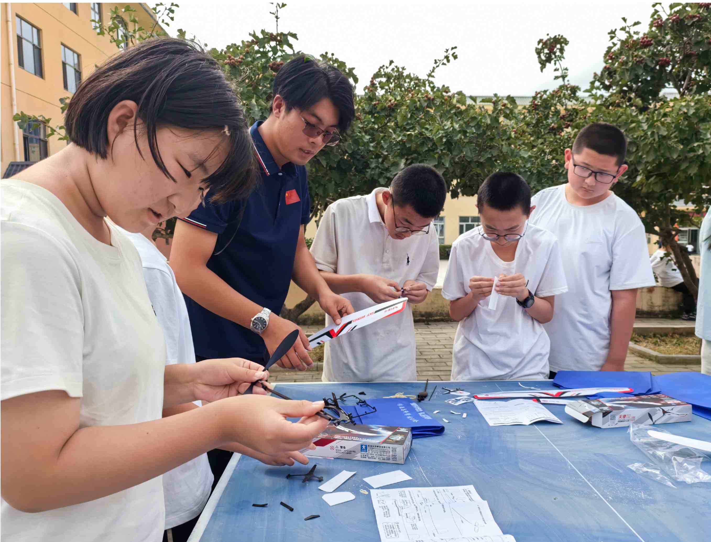 科普活动中,同学们制作航模。 刘美灵 摄