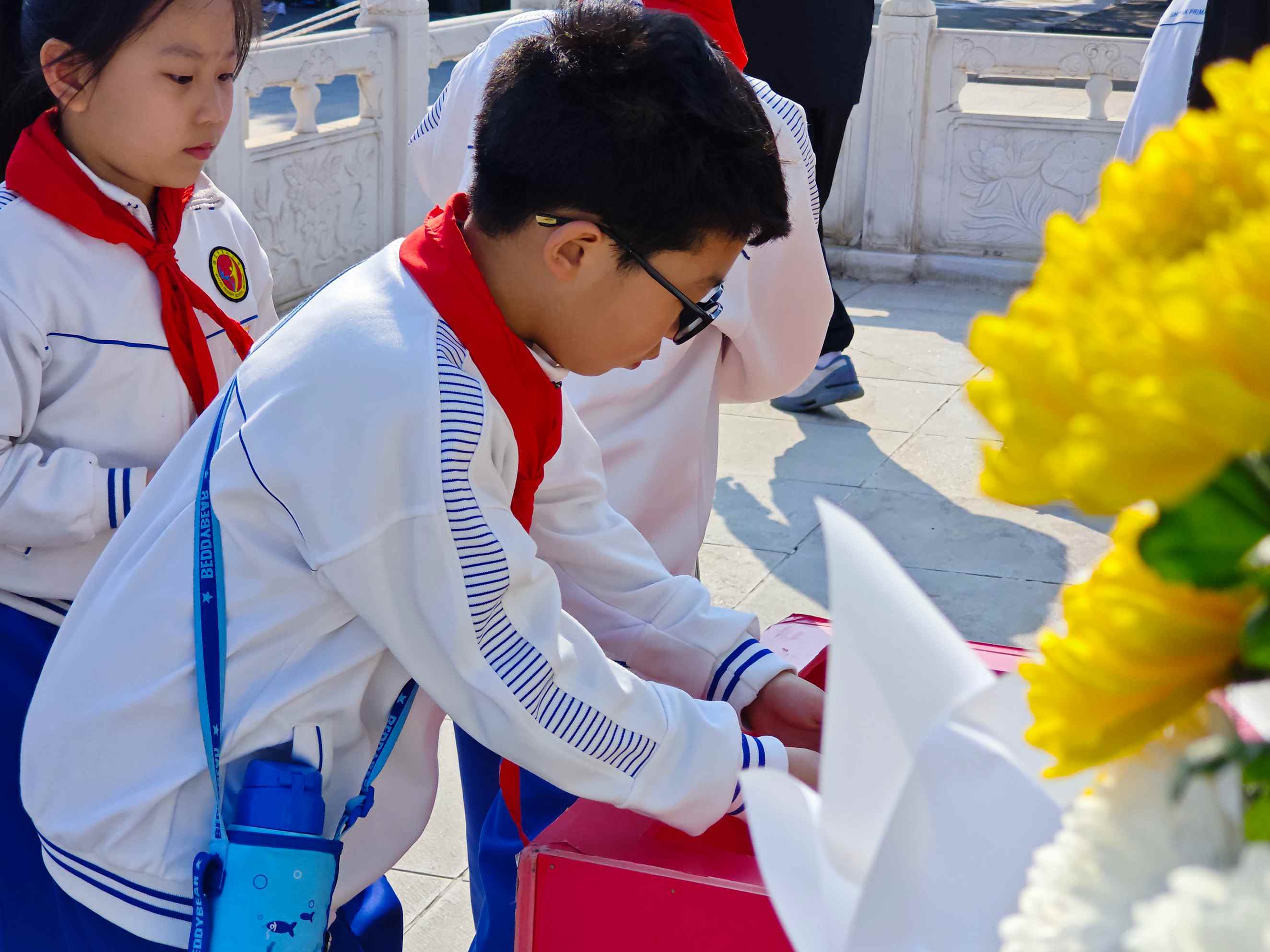 仪式最后,各班有序敬献小白花,瞻仰纪念碑、参观纪念馆,追寻红色足迹。此次活动,让师生接受了深刻的爱国主义教育,引导队员们铭记英烈、珍惜当下,以实际行动传承红色血脉,立志为强国建设贡献力量。