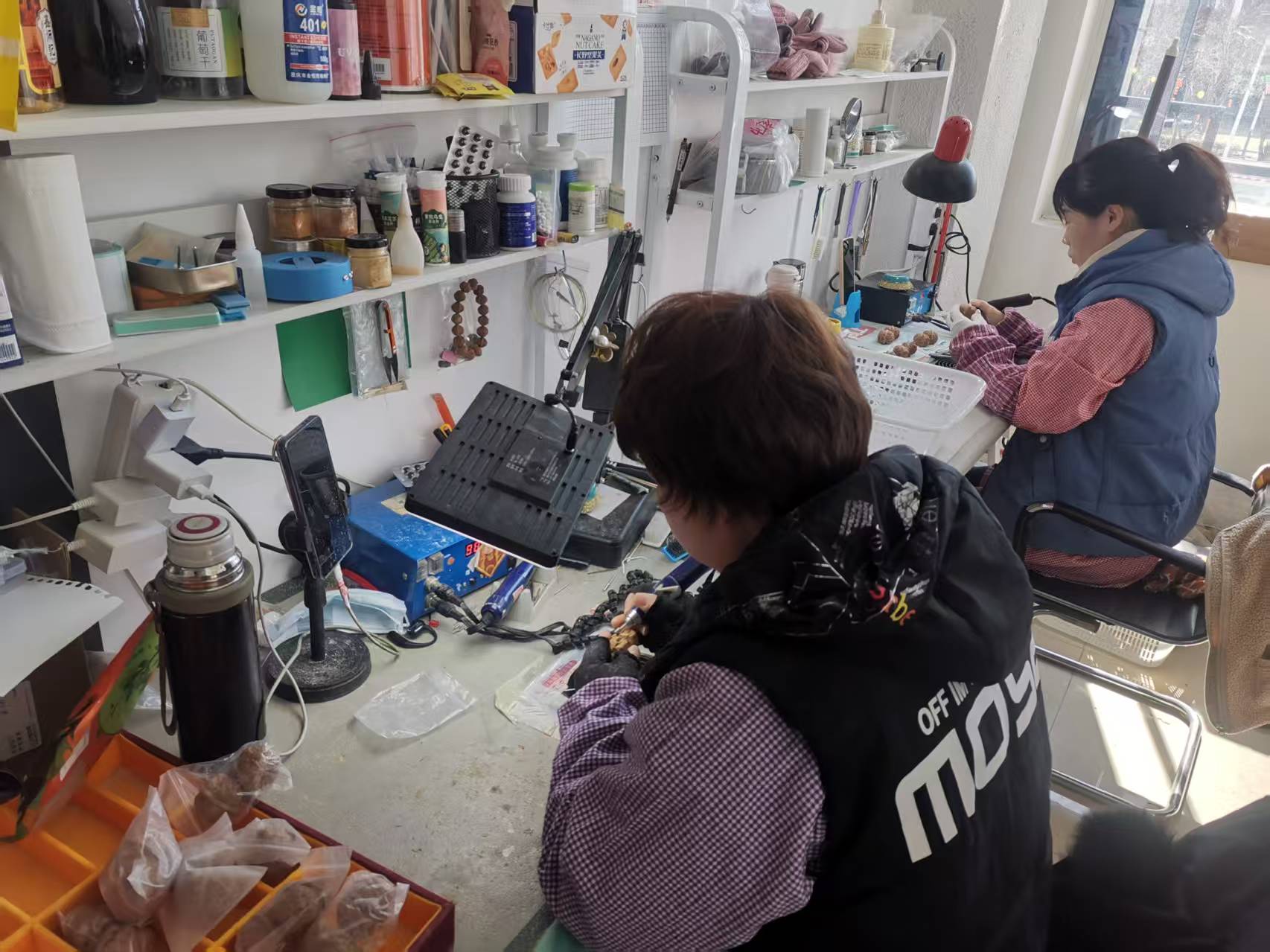 阳春三月,在涞水县的涞水·中国麻核桃城里,河北省工艺美术大师、涞水县文玩核桃协会会长于永超正在指导学员们雕刻麻核桃。从最早的师徒式的“传帮带”,到现在政府、协会多方组织的各类培训班,现在已有8000多名“核雕工匠”活跃在麻核桃的产业链上。于永超说(出录音)【把麻核桃的产业附加值翻到三五倍甚至十几倍,让许多学生也好、学员也好、老乡们也好,通过这项技能,达到创业就业、增收致富的目的。】(录音止)