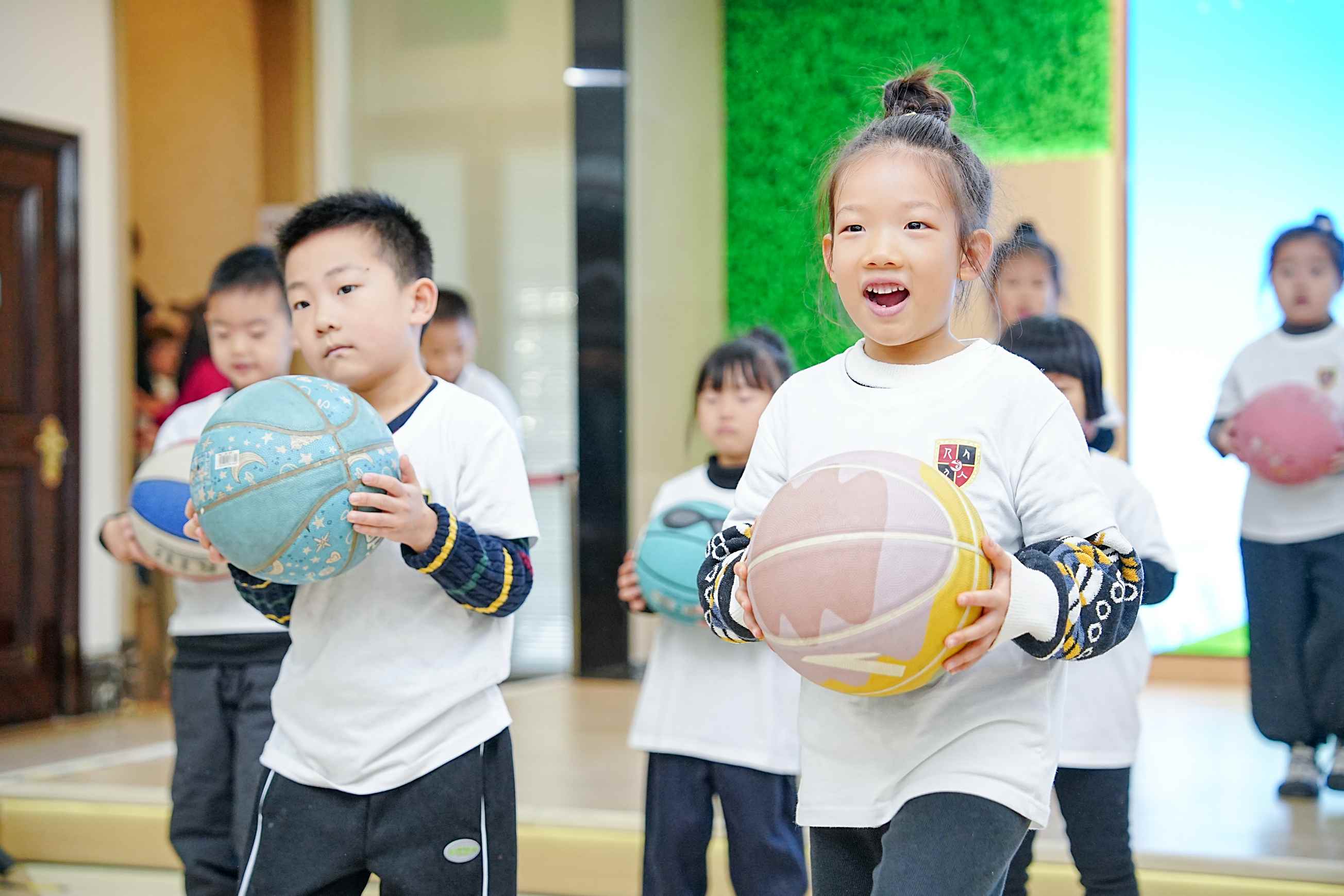 在保定市玉兰花园社区,孩子们表演篮球操。受访单位供图