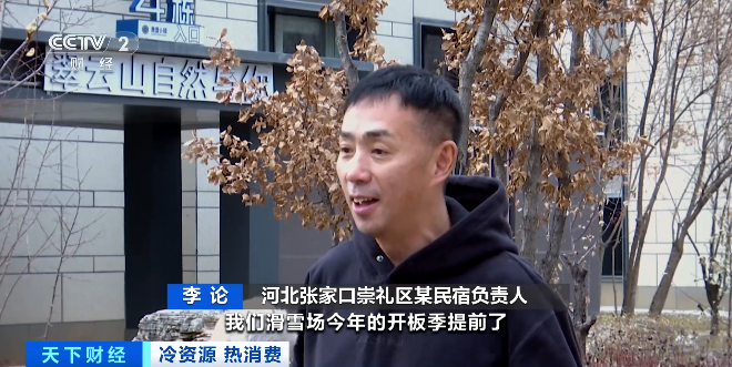 河北张家口崇礼区某民宿负责人李论:总共是92间客房,我们滑雪场今年的开板季提前了,南方小伙伴都来了,所以今年的出租率非常好。
